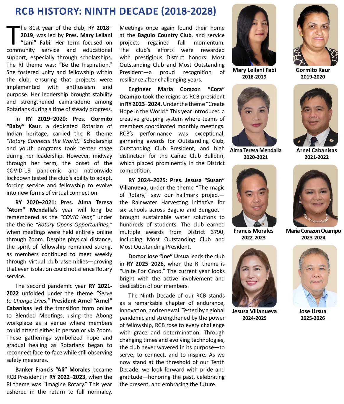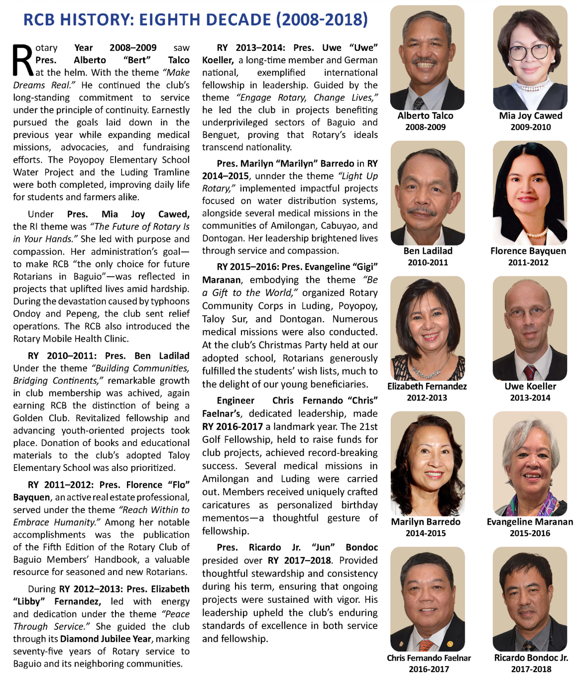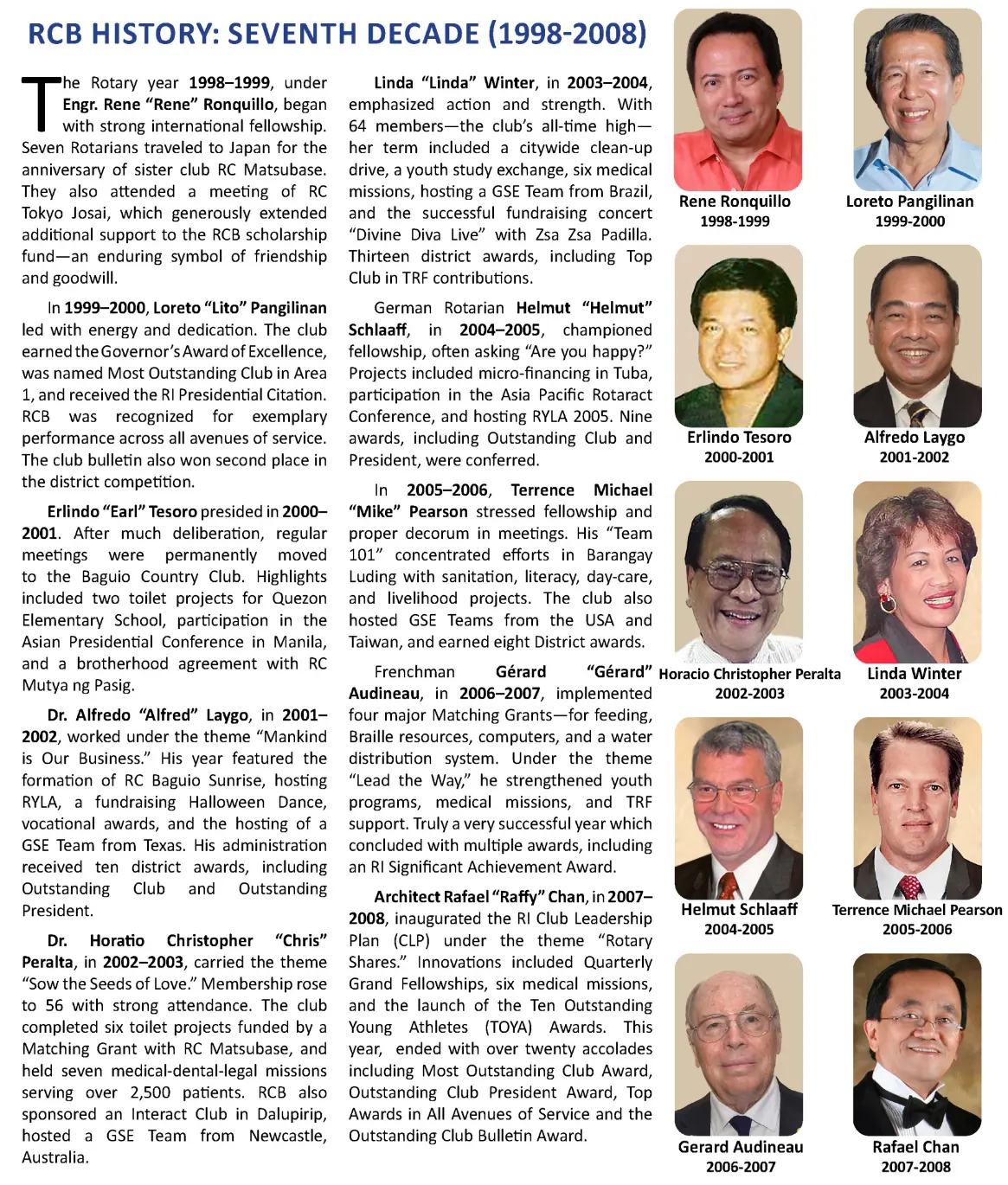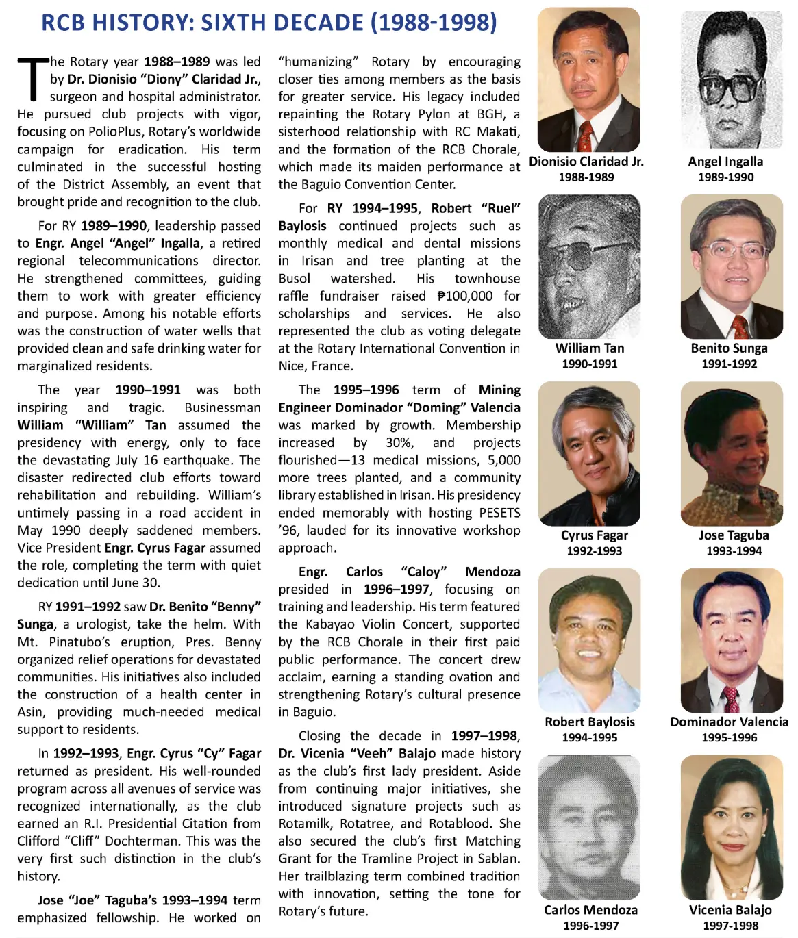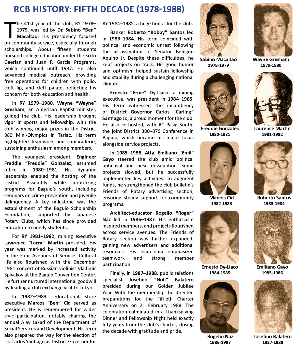 To emphasize our rich and illustrious past, our RCB History is being presented in the following by ten-year groupings, beginning with our Genesis. It is hoped that this system will make our website visitors more appreciative of our decade-by-decade transitions.